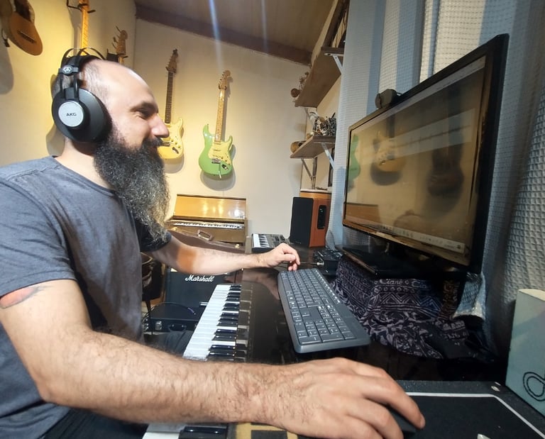 Sou compositor, produtor musical e educador apaixonado por transformar vidas e projetos através da música. Nascido em Lorena-SP, minha jornada começou na infância com o violão, fascínio que se tornou vocação.