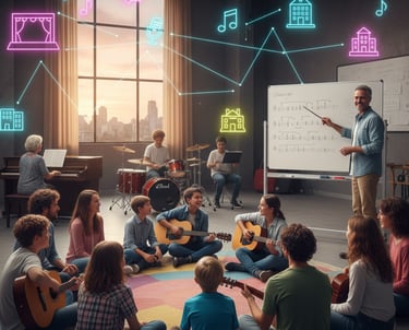 Workshops e projetos musicais para escolas, ONGs, espaços culturais e secretarias de cultura e educação que desejam incluir a música no dia a dia de forma viva, participativa e alinhada a projetos pedagógicos e sociais. São experiências em grupo que vão da musicalização, apreciação e percepção musical à criação de trilha sonora, produção musical e conversas sobre carreira em música, com formatos adaptáveis a diferentes faixas etárias e contextos, e que podem ser estruturados como projetos culturais e ações via leis de incentivo à cultura.