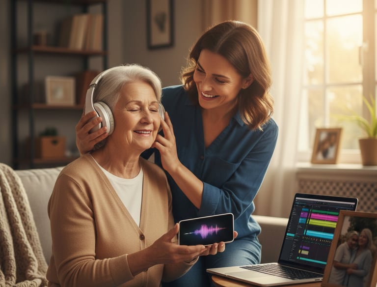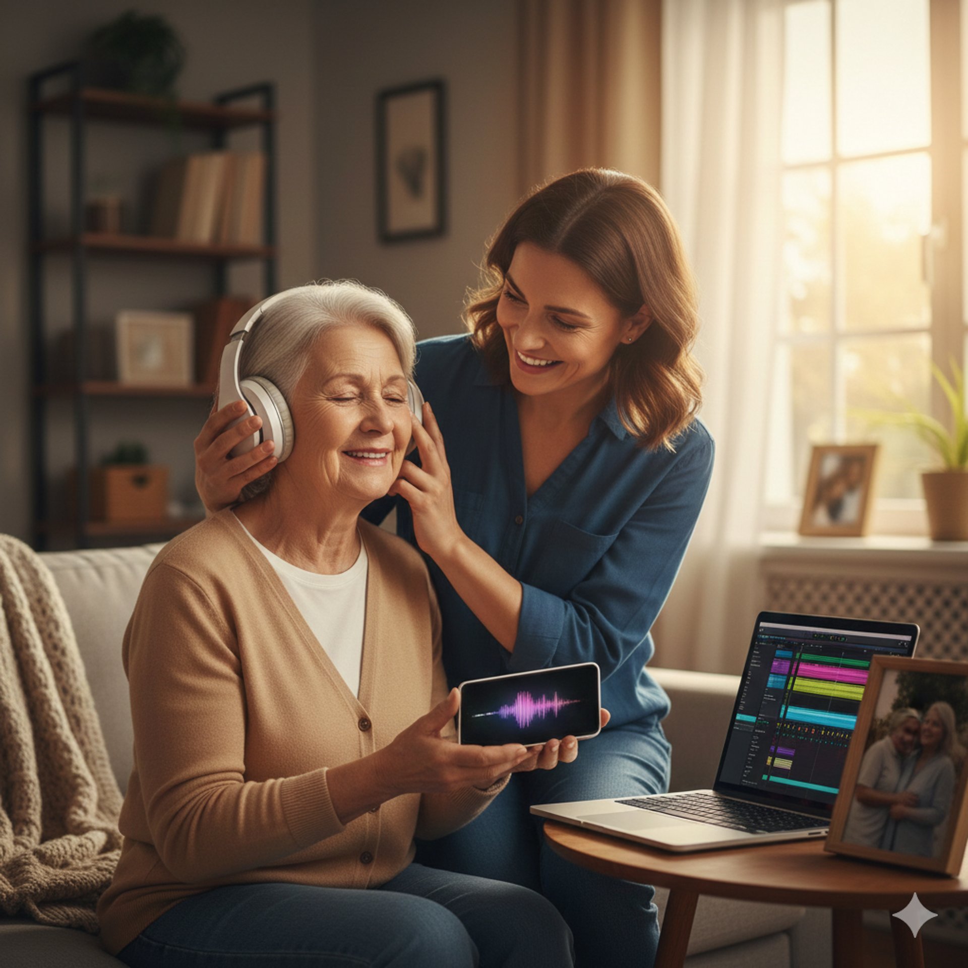 A partir do seu relato, componho letra e melodia originais, construo o arranjo e realizo a gravação com cuidado técnico para que a música soe profissional e emotiva ao mesmo tempo.