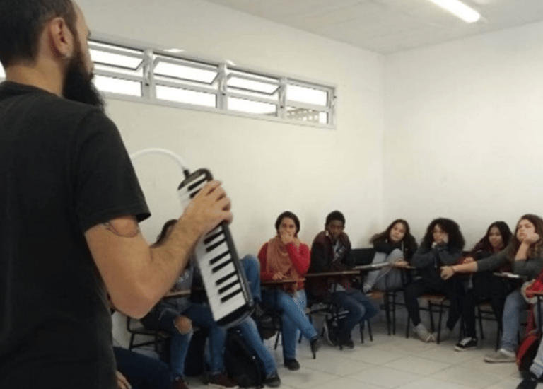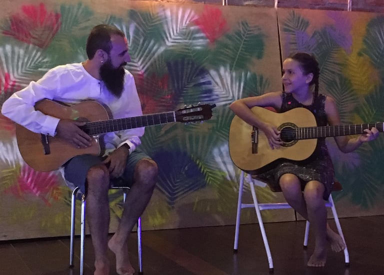 Iniciada em 2014, minha jornada na educação musical se desdobra em diferentes formatos e para diversos públicos. Através de Oficinas culturais, Grupos de violão, Aulas particulares (online e presenciais), Oficinas de improviso musical, Musicalização e Workshops de diferentes temas relacionados a música. Tenho como missão fomentar e auxiliar no aprendizado, na criatividade musical e na formação de melhores seres humanos.